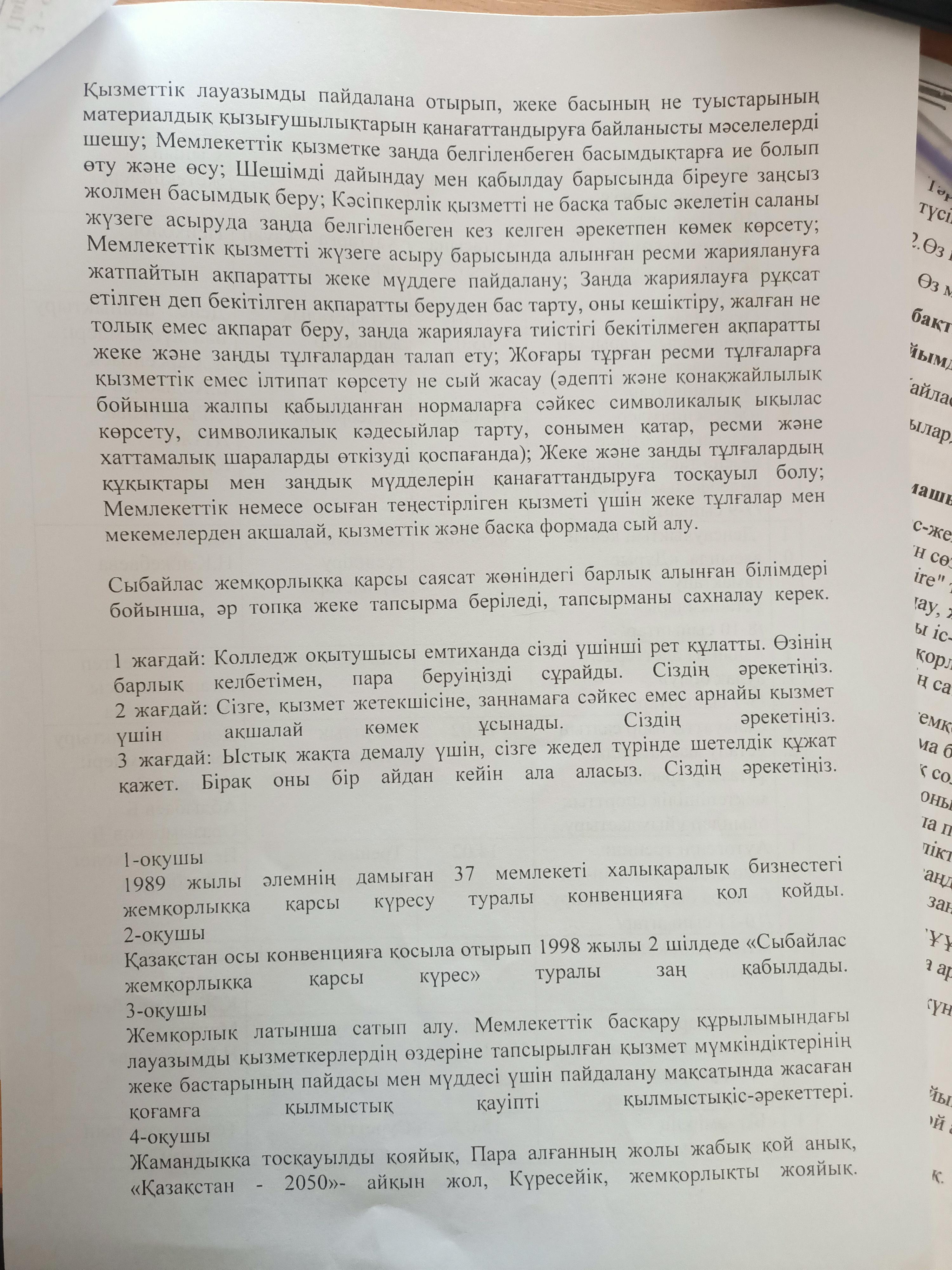 » » » Сыбайлас жемқорлыққа қарсы күрес