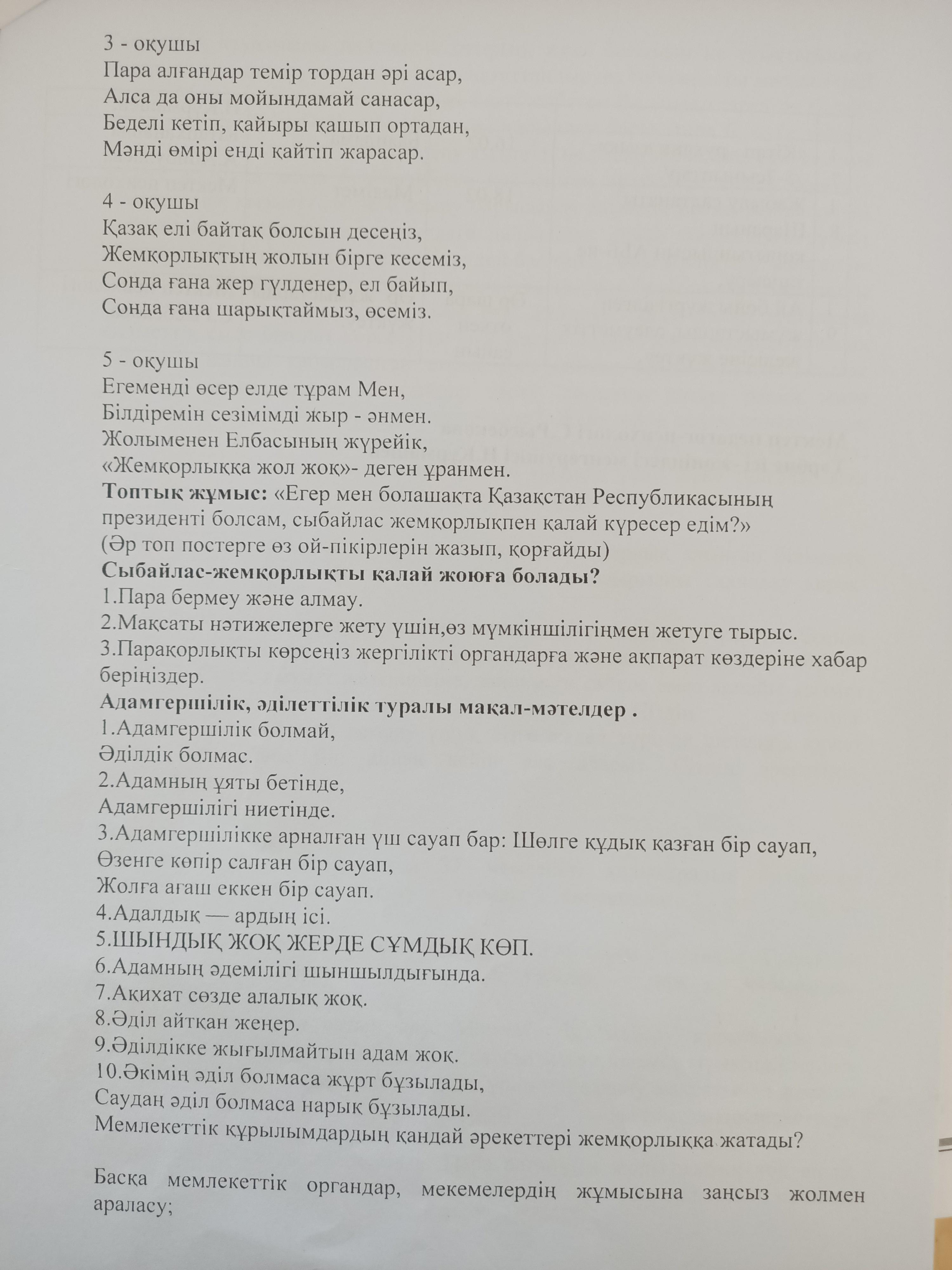Сыбайлас жемқорлыққа қарсы күрес » №37ОРТА МЕКТЕП